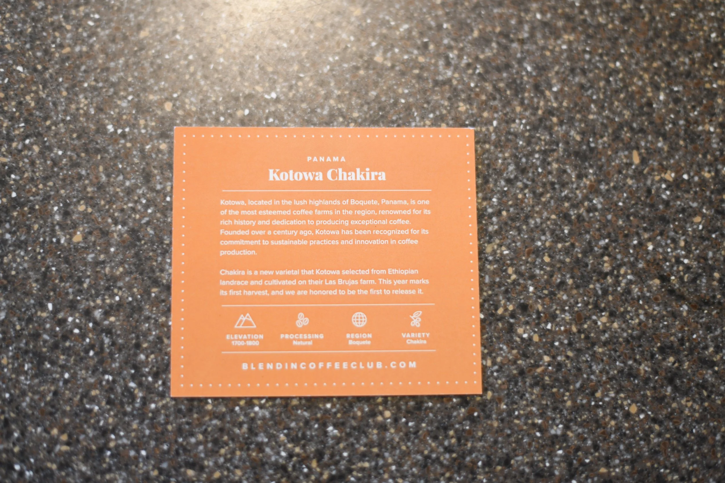 Here’s the card for the coffee, which is useful since the web page at Blendin has disappeared.